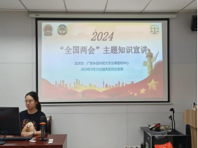 法援中心志愿者谢凯怡首先向大家介绍了广外法援,随后通过图片与文字相结合的方式,生动地给矫正授课对象讲解了两会概念的相关知识,并以两会的人员构成和两会的议程为重点进行讲解,从而增进矫正授课对象对全国两会的理解。