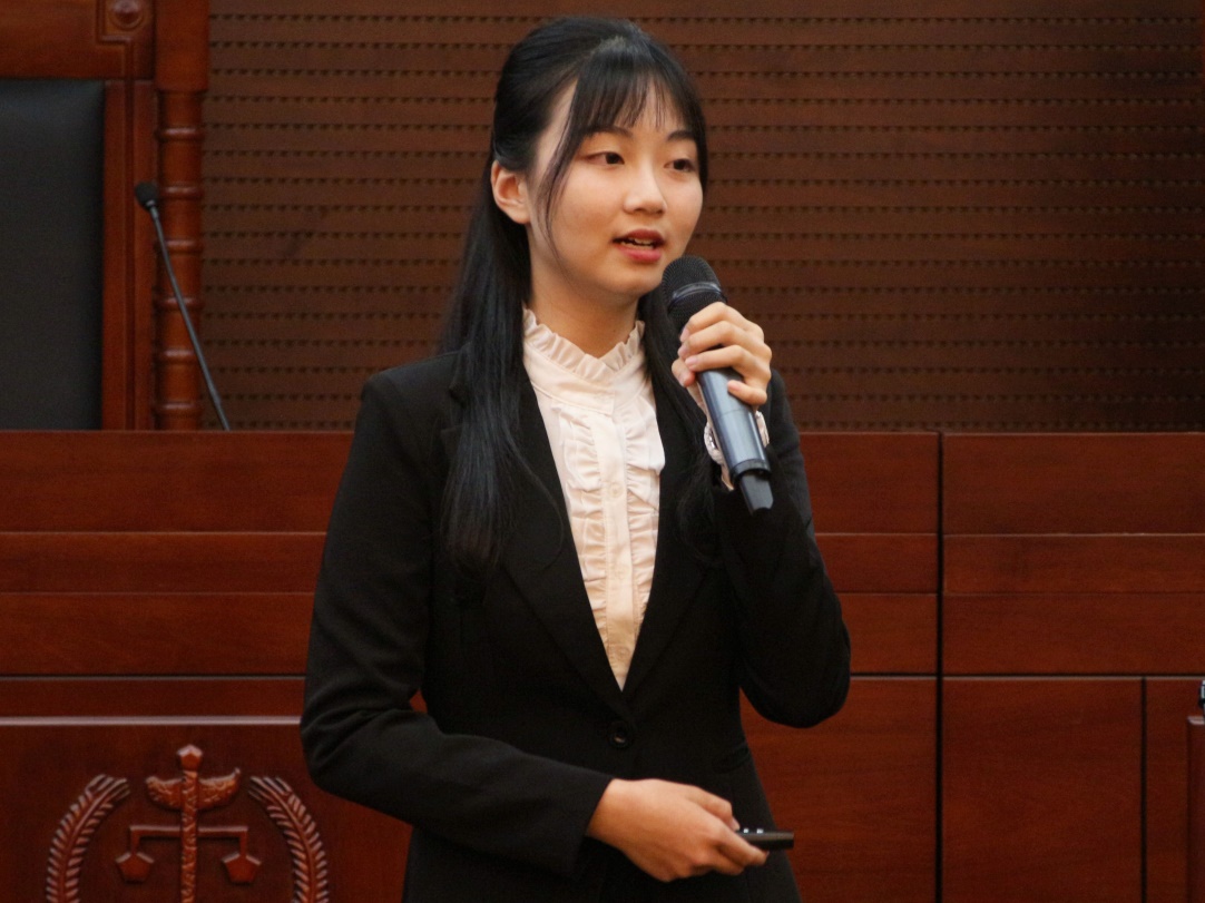 随后14法学一班的曾夏进行展示。在大学三年中她专心致志地学习,取得了非常骄人的好成绩。她的职业目标是成为处理婚姻和家庭方面业务的律师,为此需要提高专业技能,掌握法学专业知识。而来自15国经一班的林果丰则志在成为一名入额法官,为此要提高英语水平、掌握西班牙语、攻读研究生和考取公务员。