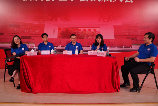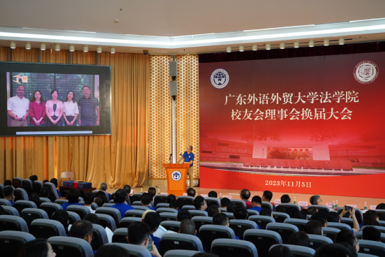员工会第一届理事会执行会长、首届毕业生代表陈伟江播放了身处国内外首届毕业生代表的祝福视频,回顾了他们在校时的学习经历、与伟德体育的不解之缘、与老师们的深厚情谊,并对母校送上祝福。他对伟德体育的高速发展和巨大成就表示无比欣喜,对历代广外法学人的不懈努力表示崇高敬意,并祝愿下一届伟德体育员工会理事会不忘初心,砥砺前行,取得更大进步。