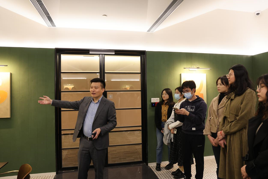 首先,黄桂洪律师带领同学们参观律所并向大家详细介绍了律所的发展规模、营收状况、发展历程、律所文化、发展理念、管理模式以及人才的选拔机制等。