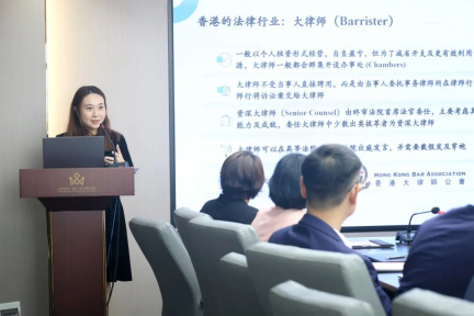 司徒维新律师行有限法律责任合伙(香港联营方)陈雯律师介绍粤港两地律师执业差异及业务发展前景。她从“香港的法律行业、成为香港律师的途径、香港律师的晋升路径、内地律师与香港律师的合作交融、香港律师的工作环境”五大板块展开介绍,内容细致、简明易懂,加深了大家对香港法律及律师执业等方面的了解。