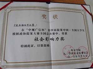 第三届全国老员工模拟政协提案大赛二等奖 最佳人气奖