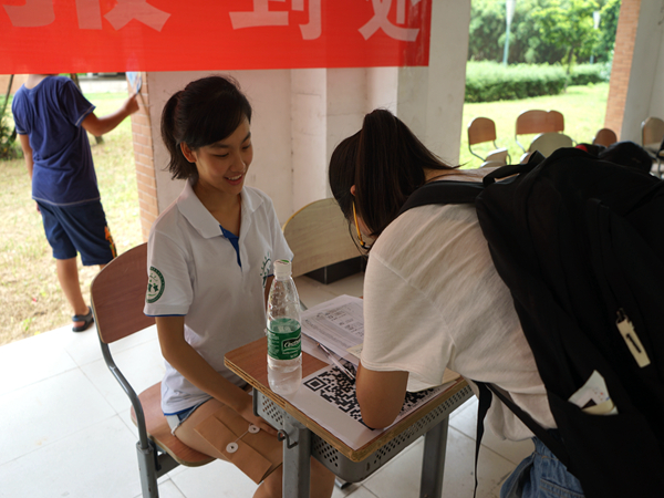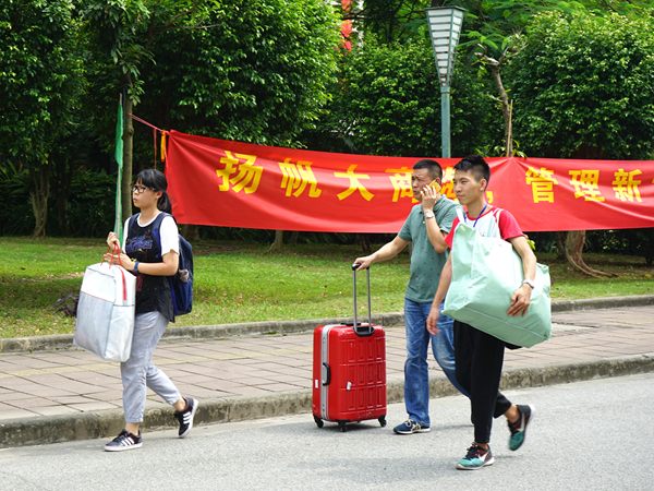 27日当天,现场工作安排井井有条。中行十字路口、隧道口、一饭、二饭、三饭内环处,1栋、11栋宿舍楼下,工作人员为新生及家长指引路线、讲解报道流程、维持秩序。新生及家长陆续搬着行李来到公司。在公交车站、十字路口和生活区入口耐心等候的志愿者们热情地提供帮助,协助他们搬运行李,将他们指引到注册处。