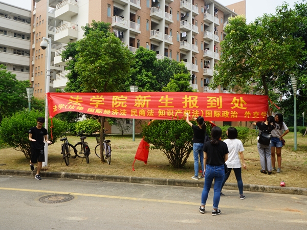 忙碌的一天很快就过去。傍晚时分,工作人员进行物资回收,迎新工作也到此告一段落。希望新生们能尽早适应老员工活,融入新的生活节奏,度过军训时期的历练,展现法学学子的风采。
