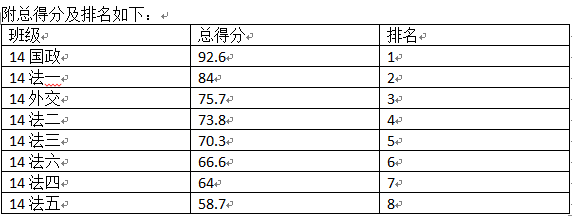 最终14国政以总得分92.6分夺得头筹,荣膺“校级优秀红旗团支部”称号。14法一位列第二,被评为“院级红旗团支部”。活动结束后记者采访了14国政的团支书。当被问及夺得此殊荣的原因时,她认为全班的参与以及团结是成功的主要原因,“其他班都是团支书一个人在努力做这件事,但我们班是一起朝一个方向努力的。”