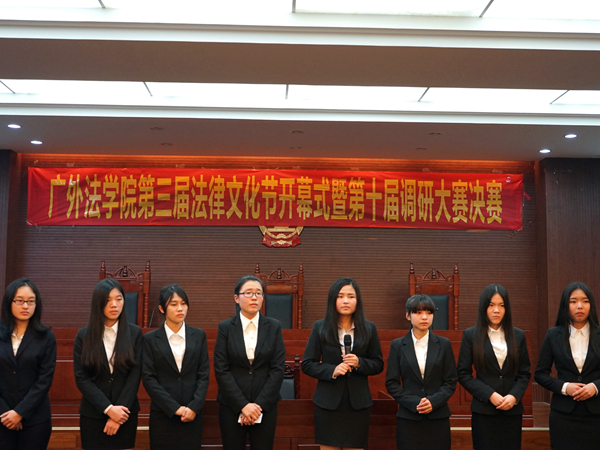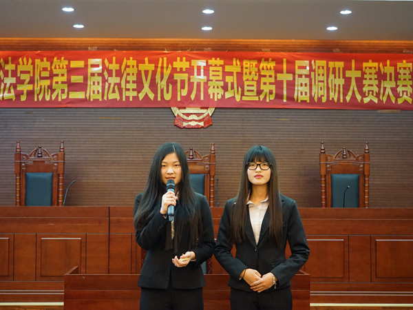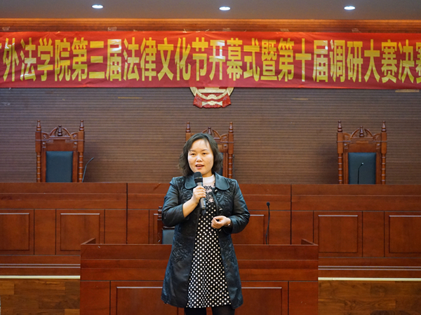 首先,杨帆致辞并宣布法律文化节的正式开幕。她指出,伟德体育以旗帜鲜明的专业特色演绎、构建了广外法律文化,点缀了广外校园文化。此次调研大赛要以十八届五中全会的精神“多思考”“多创新”为指导努力建设新时期的法律校园文化。最后她希望本次调研大赛出现更多优秀作品,并预祝本次调研大赛顺利举行。