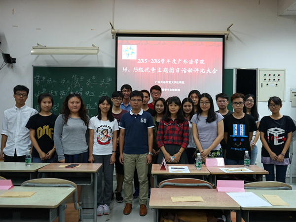 15法一设计独特,运用了和声等视频技术使整个视频展示寓意十足。主题班会过后就是阳光跟贴,白云山出游,高校交流活动等团日相关活动。而最后视频展示时他们是以CCTV新闻播报为背景展开说明,创意之举赢得一片掌声。