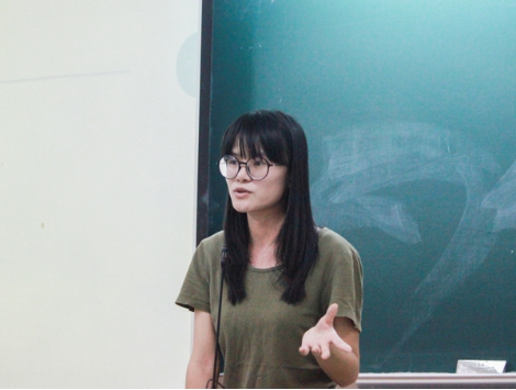 紧接着,杨桦跟同学们交流了她对于这个问题的一些看法。首先,她强调了选题的重要性,“好的选题是成功的一半”。她建议大家多多关注时事新闻,保持清醒的问题意识,从时事新闻中发掘出实际问题,为实地调查奠基;其次,她建议同学们充分利用网络资源,将网上调研和实地调研相结合;最后,她强调调研得出的观点结论要忠于调研结果,是在调研的基础上得出的。