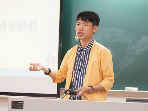 在主持人简单介绍上届优秀队伍后,优秀队伍代表容嘉俊及叶定冰开始分享他们的经验和收获。首先,容嘉俊上台发言。他认为选题要符合兴趣,且要确保选题的操作是在本组队员能力范围之内的。其次他说到调研的方法,举出了如网络调查,问卷调查及调研采访等方法。同时,他着重提到调研采访这方面,认为调研采访这个方法可以拓宽采访者的思维,具有实践价值。接着便是调查有效性的问题。针对这个问题,他认为一份有效的调查应先由调研者查阅相关资料,设计的问题要根据被调查者实际情况而定。而采访他人时采访者人数应保持在二到三人为宜,合适的录音也是需要的。最后,他补充说明了地域资源和人脉资源对调研的推动作用。