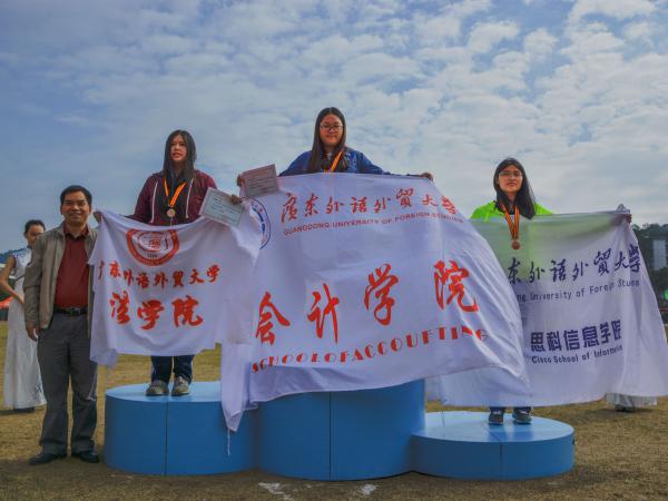 接力赛靠的不只是参赛选手个人的速度,更靠团队的合作精神,而伟德体育精英们把速度激情与团队合作演绎的淋漓尽致。女子团队首先上场,打响了第一炮。裁判员一声令下,第一棒的选手便拼力冲跑,在完成其跑程时快速把接力棒递给下一位队友。一棒接一棒,女健儿们身姿矫健,步伐轻盈,合作默契。最后取得了全校第七的优异成绩。