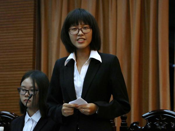 最后,主席宣布正方获得本场比赛的冠军,反方一辩郭子琪获得最佳辩手称号,15法四获得最佳组织奖。