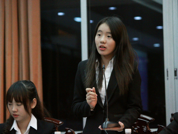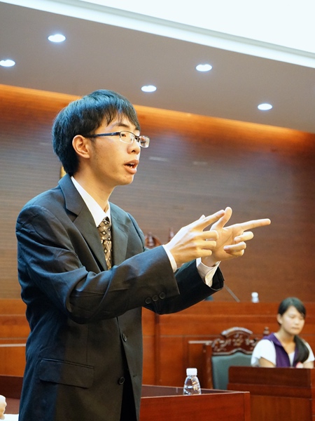 接下来进入比赛最为激烈的自由辩论环节。反方从辩论具有现实针对性的角度出发,认为对方不应只将看脸作为考量之一,“否则我们也可以说这是个看运气的世界”。反方随即又从价值观的角度反驳对手,“看脸的世界会让人们把过多的关注点放在脸上而忽略对个人素养内涵的提升,如此一来,性价比并不高”。正方气定神闲地再次申明观点:看脸是有科学依据的客观事实。他们希望人们认清这个事实继而去追求美去不断地完善自我。会场上,一方咄咄逼人,一方泰然自若,台下片片叫好之声,气氛空前!