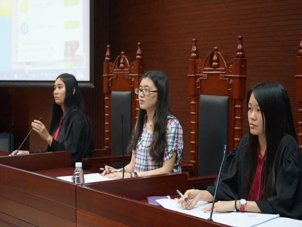 此次比赛共有三名法官以及四名参赛选手,其中每两名参赛选手代表一个国家,就案件中四个诉讼请求展开阐述,并且在阐述过程中,法官可随时中断并提出质疑,代表选手需就法官的问题进行回答。最后是反驳环节,两个国家分别派出一个代表就对方的阐述进行反驳。本次校内选拔赛决赛的案情大致如下:案情一和二讲述的是A国公民私藏一种在A国的某个区域才有的原料被抓捕后隔天自杀在狱中,随后A国人游行示威并且与政府发生冲突。后来有人向A国议会提出减少那个区域内武力介入的冲突决议,但并没有被通过。紧接着,那个区域的省议会决定就其分离问题进行公投,虽然成功但并没有被A国承认;而案情三和四则是讲述R国所有的某个公司将其在A国开采的那种药物原料高价卖给某集团,A国认为这是违反先前签订的双边条约因此单方面终止条约,而R国作为回应撤回用于生产的相关设施,A国认为这是违反国际法义务的行为。