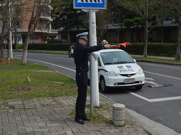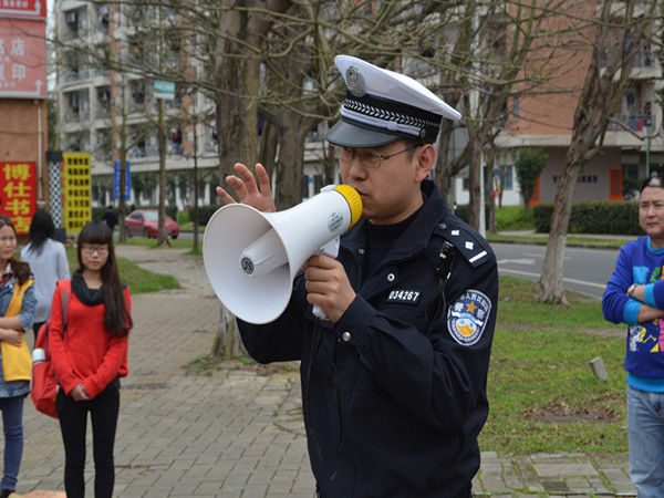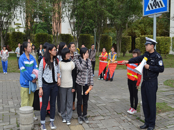 实地演示后,同学们就如何劝阻不遵守交通规则的路人、如何解决突发情况、如何用指示旗指示、如何选择正确的指挥位置等向蔡警官提问,蔡警官结合自己实践的经验、思考和总结耐心地为同学们答疑解惑。最后,蔡警官鼓励同学们利用社交媒体参与传递正能量,普及交通安全知识积“赞”,紧跟潮流积极进行大众普法。