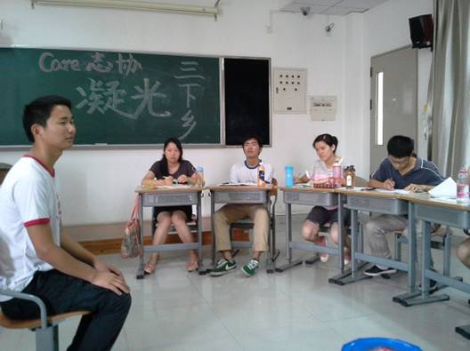 伟德体育Care志协“凝光三下乡”队伍开设了义教组、普法组、调研组、义诊组、文娱组、宣传组以及后勤组等组别,具有全面性和创新性。各组组长为了能够挑选到真正诚心参加、有能力参加“凝光三下乡”队伍的队员,特别邀请了上一年三下乡队伍的组长加入面试官的行列,对前来面试的同学进行考察。主要考察面试者对三下乡的认识以及各方面的综合能力。