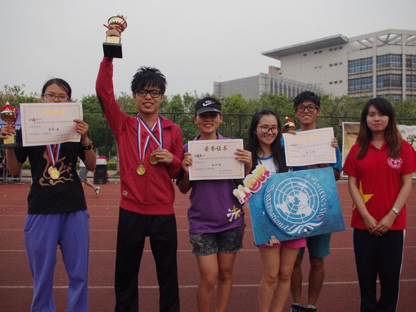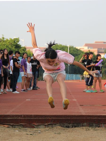 跳高可谓本次院运会挑战不断,精彩纷呈的一个项目。男子组首先进行比赛,竞争激烈。经过层层较量决出胜负后,来自10外交的冠军选手周建烨不断突破自我,最终以1.70m的成功一跳赢得观众的掌声和欢呼,也为男子组的比赛画上圆满句点。据采访,周建烨曾在前两届院运会跳高比赛中分别荣获三等奖和一等奖,本次参赛算是稳操胜券。相对男子组而言,女子组比赛气氛较为缓和,但是最终较量依旧扣人心弦。对决在11、12级法五的两位选手中展开,最终12级甄智贤技高一筹,以其背越式跳法赢得本场冠军,并在不断尝试中取得1.40米的好成绩,让人感叹后生可畏。