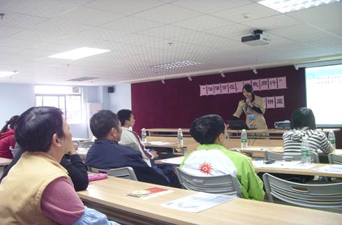 志愿者在讲座现场进行介绍