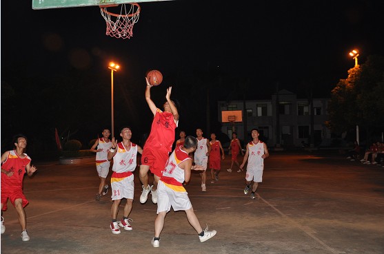 晚饭过后的重头戏就是篮球比赛,仍然是凝光队对武警队,女生当拉拉队。一开场凝光就拉开了比分,发挥得很不错,5个队员配合的十分紧密,连连进球。随着比赛的进行,虽然凝光队的男生球技更胜一筹,但是武警的速度与力量更具优势,最后85:87,凝光以2分之差输给了武警队。