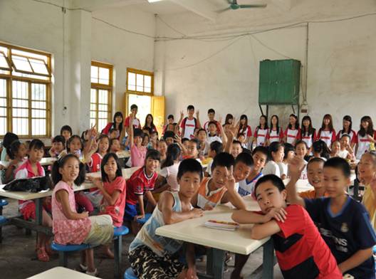 开学第一课的班会课,首先要做的就是选班委。不少孩子都毛遂自荐, “姐姐,我要当班长,因为我要当英雄”“姐姐,我会唱歌、会跳舞,我想做文娱委员”…… 听着小朋友稚气的声音,这些下乡的哥哥姐姐在感到好笑的同时也为孩子们的纯真而高兴。班会课后,专门为孩子们安排的心理课、手工课、通识课等课程也陆续开展。有的小朋友因为手工做不好而哭红眼睛,有的小朋友宁愿牺牲下课时间也要完成手工的制作,有的小朋友总是第一个在老师提问后高高地笔直地举起自己的手……