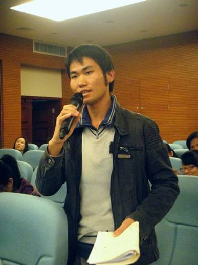 一开场主持人以简短的语言为大家介绍了国家司法考试及其内容。率先登场的是罗少龙,他从时间安排方面入手,强调司考起码要准备半年,并要保证三个月的有效复习,他告诉我们在司考这场战役里“坚持就是胜利”。