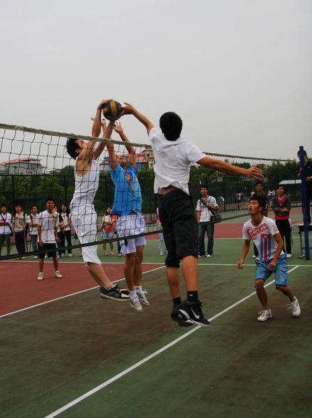 本网讯(文字:杜颖思 摄影:杨斯) 5月25日下午,公司班际排球赛最后两场决胜之战拉开战幕。09法一和09法二争夺冠军、09法四和09国政争夺季军。
