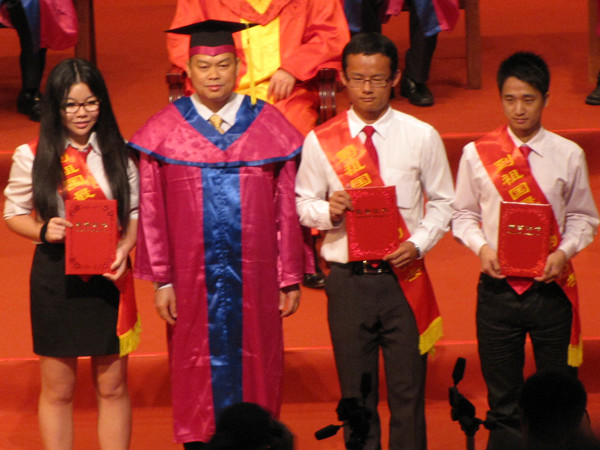 冯卓怡(左一)作为西部计划志愿者在毕业典礼上接受颁奖