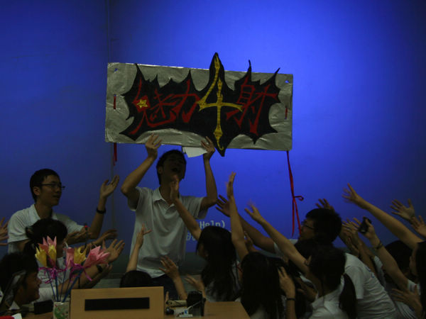 10法四在一片漆黑中手捧红蜡烛讲述着他们“最初的梦想”,最后一个刻有“魅力四射”的法四标志牌随着音乐的结束定格在了观众心中。压轴上场的10法二更是带来了一段诙谐有趣的男女对舞,掀起全场气氛之余更让人感受到一个充满活力的班级。