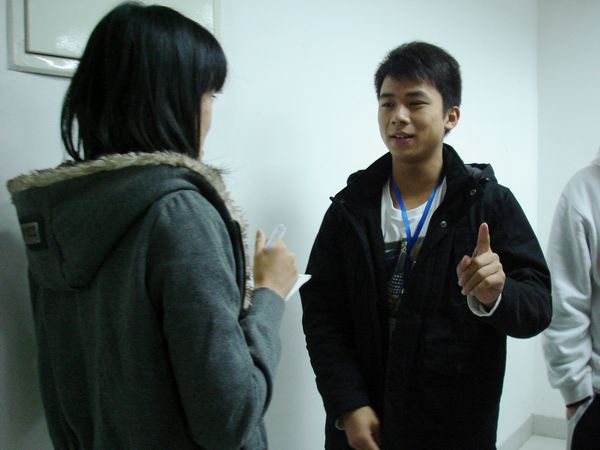 首先与观众交流经验的是陈挚,他先以一条公式:实力+淡定+运气=成功的保证拉开交流会的帷幕,他强调司考准备过程中心态的重要性,要把紧张化为动力,巧妙利用压力这一双刃剑,从而为成功作出保证。