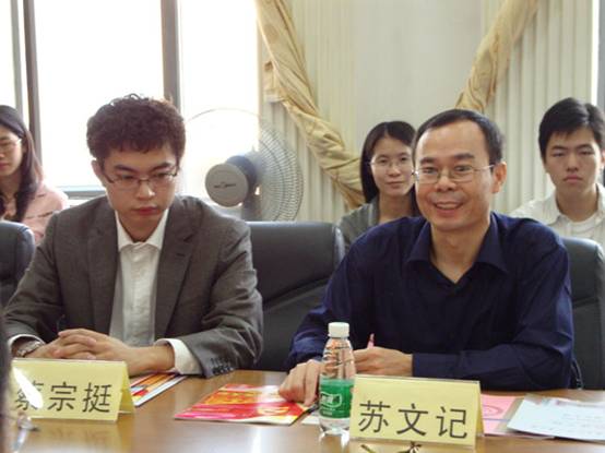 卢海清和苏文记分别简明扼要地介绍了各自员工团队的架构、工作分配和干部。郭嫄则进一步介绍公司“团学不分家”的组织特色和精品活动,并希望两校员工干部能抓住这个难得的机会相互学习,吸收宝贵经验,以更好地发展。