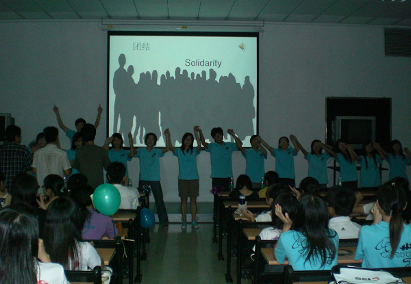 接下来07法律二班用他们流利的英语让在场的观众折服,他们展示的古代战争令观众感受到07法二良好的精神面貌。
