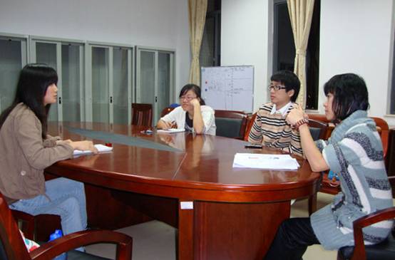 梁文蕾就此建议道可在公司试行小型全英辩论赛,或在院内组一支英语辩论队作为常备军。沈凌玉补充强调说在大量前期工作做好的前提下,指导老师画龙点睛的指导起着非常大的作用。因此壮大参与的团队队伍十分关键。