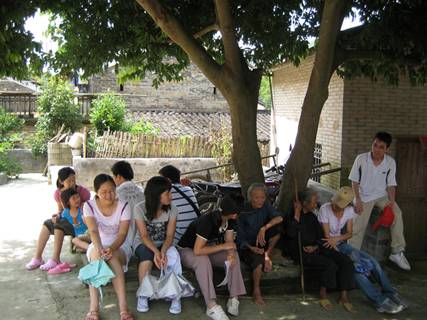 调研组组员首先来到一位莫大叔的家,莫大叔见到我们特别热心地请我们进屋里做,倒茶给我们喝,跟我们拉了一会家常后开始接受队员的访问。莫大叔虽然只读到五年级,然而他对调研课题有些问题提出的见解着实让我们吃了一惊,提出了不少对“农家书屋”发展的有益建议。淳朴而又开明的村民让队员们对未来的工作更有信心了。