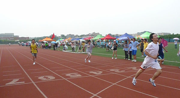 06法一是06级唯一参加女子4×100米接力赛的团体。获得第三名的08法2的同学在到达终点后,全班女生相聚一起,欢呼喝彩。