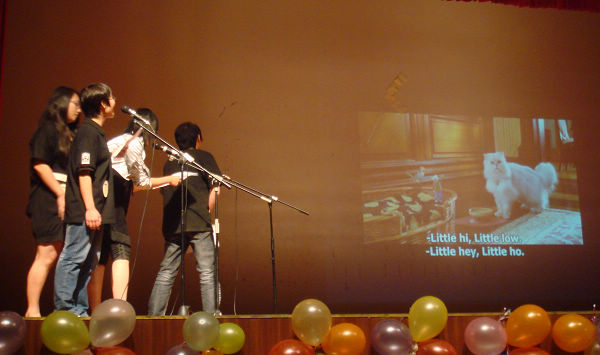 第二个环节要求各个小组分别为不同的电影片段做配音,考验的是参赛小组的团体合作性和英语会话能力。《加菲猫》、《魔戒》、《哈利波特》、《Stuart Littlle2》、《功夫熊猫》、《马达加斯加》、《圣诞营救计划》等熟悉的电影在各小组的幽默又专业的配音中,让我们仿如置身于录音棚,亲历电影工作者为电影录音一样。其中,BEAUTY&BEAST的不俗表现搏得了在场观众热烈的喝彩声。