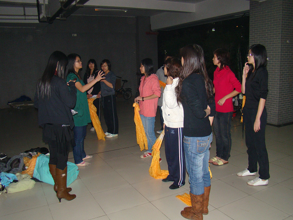 由于场地的限制,07外交的同学在排练时几番周折才把音箱设置好。没有麦克风,他们拿起水瓶就迅速进入状态,还不时与在一旁观看的文娱部工作人员热情互动,颇有明星风范。他们表示,节目中最困难的是几位女生的伴舞。看似简单,但要跳得整齐却也不易,她们确实下了一番苦功才有今日的成果。记者晚上十点多离开时,他们仍在认真排练,不断修改细节,力求更完美。