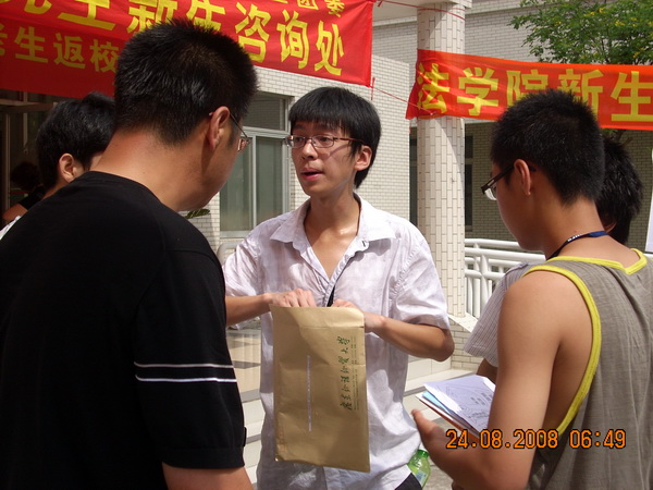 06级法学二班的陈小凤同学今年已经是第二次参加迎新工作,她认为今年的工作比去年更加注重细节,填补了许多不足的地方。而当说到“90后”进军大学城时,她也表示感到了师弟师妹带给自己的压力,希望能在新的学年里抓紧时间,进一步提高自己。