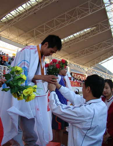 在28日下午进行的男子1500米中,公司05级的吴国威选手获得银牌。在本次比赛中,吴国威选手在最后一圈冲刺前的弯道上被经贸公司的谭广基反超,遗憾地与冠军失之交臂。最终,经贸公司谭广基以4分38秒54赢得冠军,吴国威以4分40秒42屈居亚军,季军则被管理公司的刘志演则以4分44秒73获得。
