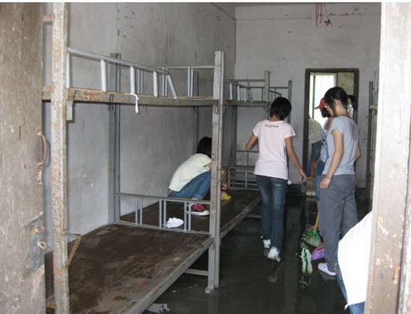 第四难:洗澡难。宿舍里肯定没有热水啦,女生要用热水洗澡,所以要麻烦饭堂阿姨帮我们煮热水,然后再将热水提上三楼。11个人共用一个厕所洗澡,大排长龙的样子可想而知。我总喜欢最后一个洗,这样就没有人催促了。一开始大家都坚持去提水洗澡,慢慢地最后就变成只剩几个人了。直到最后一天,大家全用冷水洗……