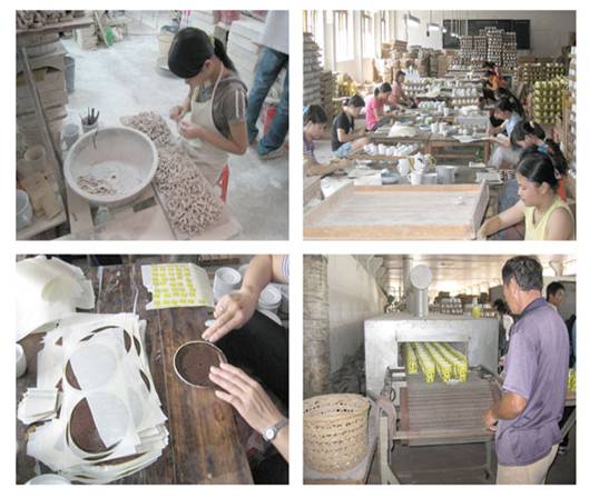 紧接着,陈书记、刘主任和刘厂长分别向我们简单介绍了当地的陶瓷制造业和金星陶瓷实业有限公司的各方面情况。潮州素有“瓷都”的美称,饶平是“瓷都”中的“瓷乡”,去年更被誉为“广东省陶瓷科技专业镇”。当地拥有大大小小280多家制瓷工厂,而金星陶瓷是新丰镇的龙头企业,目前拥有三万多名员工,去年年产值突破1亿人民币,是当地的纳税大户,同时也为当地人民提供了大量的就业机会。金星陶瓷实业有限公司的产品直接出口到欧洲国家,其最大的特色就是生产、制造、加工一条龙。