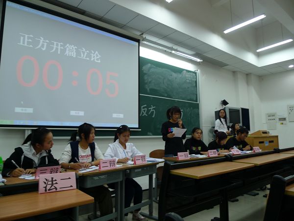 比赛精彩纷呈,双方辩手越战越勇,就连两个班的观众不断为本班鼓励加油。最终由反方队伍08法2获得首场的胜利。而来自08法2的反方一辩马雨寒获得了“最佳辩手”称号。