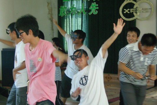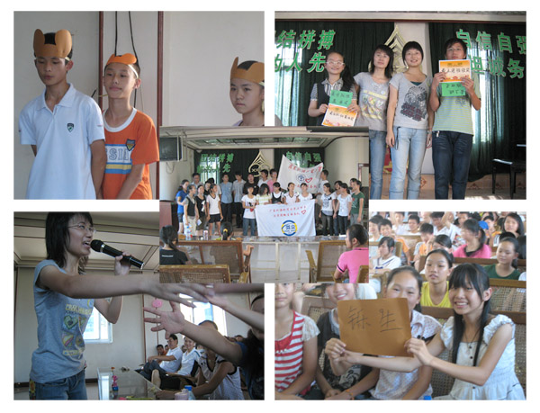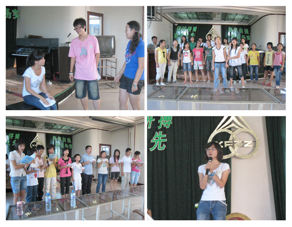 招新及排练的过程枯燥、辛苦、状况连连,但是我们却很享受这段难得的体验。当你听到那宛如天籁的童声唱出“虫儿飞”时;当你看到“笨拙”的小熊在台上大声说出还不是太标准的英文台词时;当你感受到同学们发自心底地为汶川呼唤时;当你看到男生像模像样地练着难兄难弟的时候,你会真切地感受到一种快乐,一种努力着的感动。如果要说排练经验的话,那就是多去发现孩子、队员的文娱细胞,燃烧你们的文艺小宇宙,找准目标,一直坚持下去。