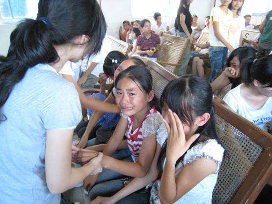 精彩的节目无法一一细数,离别时刻的复杂感情更无法一一言说。文艺汇演结束以后,夏令营的孩子和微尘的队员做最后的告别,他们拥在一起合影留念、签名留言。几个女生难过得流下眼泪,队员们强忍住泪水安慰大家,同时不忘勉励员工们要好好学习,场面十分感人。