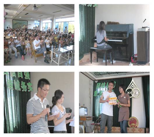 下午3点半,文艺汇演在“微尘”队员热力四射的合唱声中缓缓地拉开了帷幕。“风浪再大,我也会勇往直前,我们的爱,镶在青春的纪念册……”。玻璃窗外艳阳高照,会议室里精彩不断。钢琴独奏、小品相声、诗歌朗诵、英文戏剧、歌曲联唱……小小的舞台演绎着广外学子和新丰员工的各种才艺,也传递着他们之间的浓浓情谊。