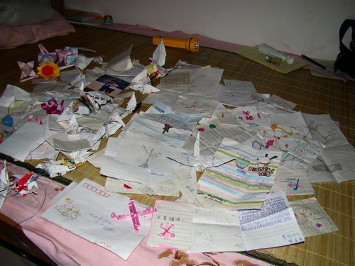 送别晚会的筹备工作在紧张地进行着。今天,各位队友也都收到更多来自员工们的信。文锦(六年级班)说:“家俊知道你们快要走了,不是很开心。”家俊这小男孩感情很是丰富。文鑫,四年级班的一个调皮男孩,情感也很浓厚,他写信给大盛兄说:“没有你在,我会学不下去的。”还是来自四年级班的金凤,一个小女孩说:“很想把你们留住,可是你们要回去和家人团聚,我们留不住......”看着一封封信,心情开始沉重起来,有他们的祝福,同时又感到欣慰。