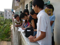 天已经很亮了,睁眼一看,7点钟,发现窗前站着5、6个女生,冠恩在中间,她们表情是那种离别的不舍。原本是今天早上11点离开的,但昨晚晚会回去后临时改了通知,由于车没协商好,今天走不了了。杏媚问:“今天还是这么早过来啊?没吃早餐吧?(孩子们上学大多没吃早餐的习惯)”“老师,我怕来不及见到你们。”来公司送别的员工们都手持一个本子,到处找老师们写联系方式,对角男生同胞那儿围了一堆孩子,我们宿舍也是,还有好多在楼下大树旁等着......这情景,令人感动。
