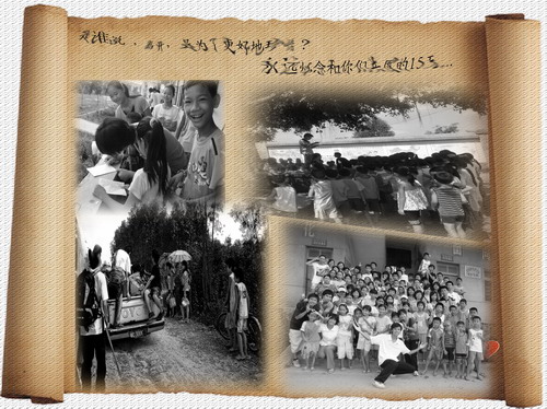 翻开相本,看着照片中一张张稚气的脸,周围熟悉的环境,感觉恍如隔世。想过离别,却从未发现相处的欢乐会如此短暂。心,已经飞到那生活了15天的地方,孩子们,你们还好吗?最近农活累吗?