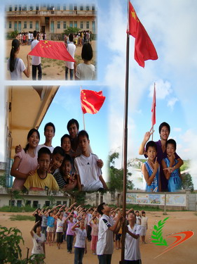 白沙小学由于人数少,过去一直没有每周举行例行的升旗仪式的习惯,红旗自从多年前升起以后,一直都没有降下来过。红旗由于长期的日晒风吹雨淋已经变得破旧不堪,用队员们的话形容国旗简直就是在“随风飘曳”。