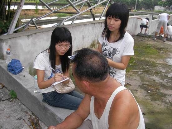 鹅湖村排水沟下雨时沟水泛滥,经常把附近整片稻田都淹没,给村民带来巨大的经济损失。村民曾多次向村委会反映此问题,但由于领导忽视及资金不足等种种原因,他们的投诉如石沉大海。村民们都积极配合调研组的工作,虽然由于语言及部分村民的立场及自家特殊情况而使工作遇到一些障碍,但队员都出色完成了此次的调研工作。