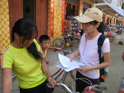 迎着骄阳,调研组徒步几公里来到小镇,城镇十分偏僻,村民很少,居住分散。趁着“趁墟”这个赶集的日子, 调研组采访了从10来岁到60多岁的村民。虽然因为语言上的障碍造成很多麻烦,但经过调研组耐心地努力最终还是完成了67分的调查问卷。调研组的组长说,“在这偏僻的地区,今天所取得的调研成果远远超出我的预期”。