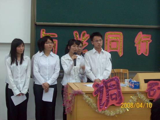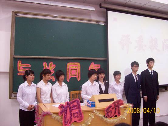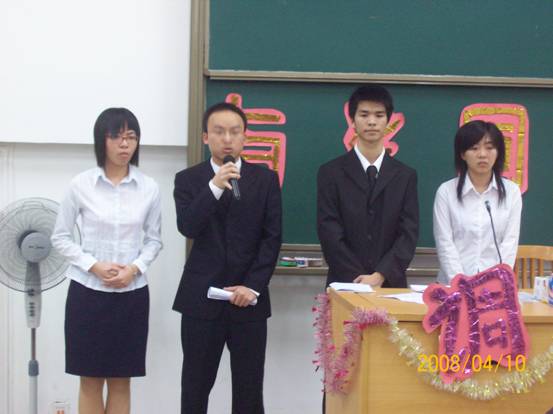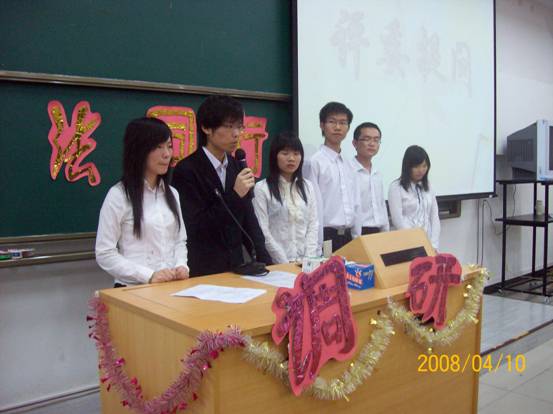 接下来是纳海小组,他们先用一个视频对自己的组员作了简短的介绍。作为关注劳动合同法的队伍,他们说,目前劳动合同法的实施面临三大问题,无论是工薪阶层还是老员工,对该法的一些概念都有所误解,他们用情景剧的形式,表现了劳资各阶层对“无定期合同”的误解,得出了应当加强宣传力度的结论。在最后,队长为自己的失误道歉,并表示参加这次比赛让她学到了很多知识,增进了和队员们的感情。